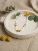 Luméa - Collier en perles blanches et ornements en acier inoxydable or